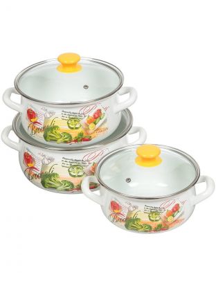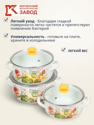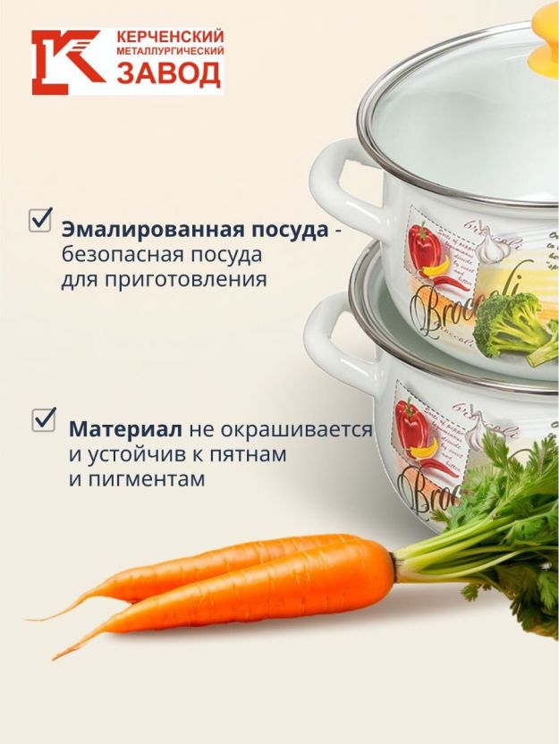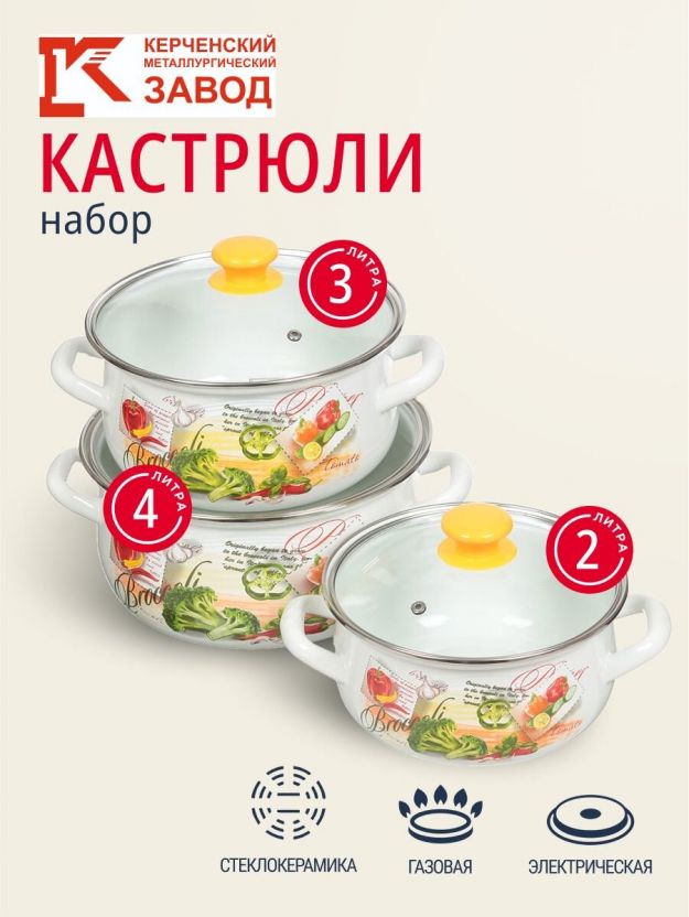 Набор посуды эмалированная сталь, 6 предметов, кастрюли 2,3,4 л., МП, Керченский металлургический завод, Брокколи-Экстра