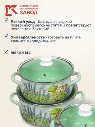 Набор кастрюль из эмалированной стали «Тоскана-Экстра», 6 предметов: оптимальный выбор для дома и дачи, долговечность, практичность, выгодная цена. Почему выбирают: Уникальное сочетание: классический дизайн и проверенное качество Керченского металлургического завода Три объёма (2, 3, 4 л) из эмалированной стали — прочность, устойчивость к коррозии, стеклянные крышки для контроля готовки Идеально для дома, дачи и в качестве подарка — универсальный набор для повседневного и сезонного использования Набор посуды «Тоскана-Экстра» — это практичный выбор для тех, кто ищет долговечные кастрюли для ежедневного приготовления. Эмалированная сталь не впитывает запахи, устойчива к царапинам и проста в уходе, что особенно важно для семей с детьми или частых гостей. Благодаря трём объёмам (2, 3, 4 литра) вы легко подберёте подходящий размер для супа, каши, гарнира или компота. Часто спрашивают: «Как выбрать набор кастрюль для дачи?» — обратите внимание на универсальность этого комплекта и его совместимость с газовыми, электрическими, стеклокерамическими и галогеновыми плитами. Отсутствие антипригарного покрытия упрощает уход: не требуется специальная посуда или средства для мытья. В отличие от аналогов с алюминиевым корпусом, эмалированная сталь не окисляется и сохраняет вкус блюд. Крышки из прозрачного стекла позволяют контролировать процесс готовки без постоянного открывания. Если вы ищете, что лучше для подарка на новоселье или для обустройства дачи, этот набор — универсальное решение. Он не подходит для индукционных плит и посудомоечных машин, но это компенсируется высокой прочностью и простотой ручной мойки. Закажите набор кастрюль «Тоскана-Экстра» с выгодой — получите проверенное качество от российского производителя и практичное решение для кухни любого формата. Оформляйте покупку онлайн: доставка по России, гарантия соответствия и поддержки. Частые вопросы: Можно ли использовать этот набор на индукционной плите? Нет, данный набор кастрюль из эмалированной стали «Тоскана-Экстра» не предназначен для индукционных плит. Он совместим с газовыми, электрическими, стеклокерамическими и галогеновыми конфорками. Чем выгоден набор для дачи или подарка? Универсальные объёмы (2, 3, 4 л), устойчивость к коррозии и простота ухода делают этот набор отличным выбором для дачи, сезонного использования и подарка на новоселье. Какие материалы использованы для кастрюль и крышек? Корпус кастрюль выполнен из эмалированной стали, крышки — из прочного прозрачного стекла. В комплекте 6 предметов: 3 кастрюли и 3 крышки.
