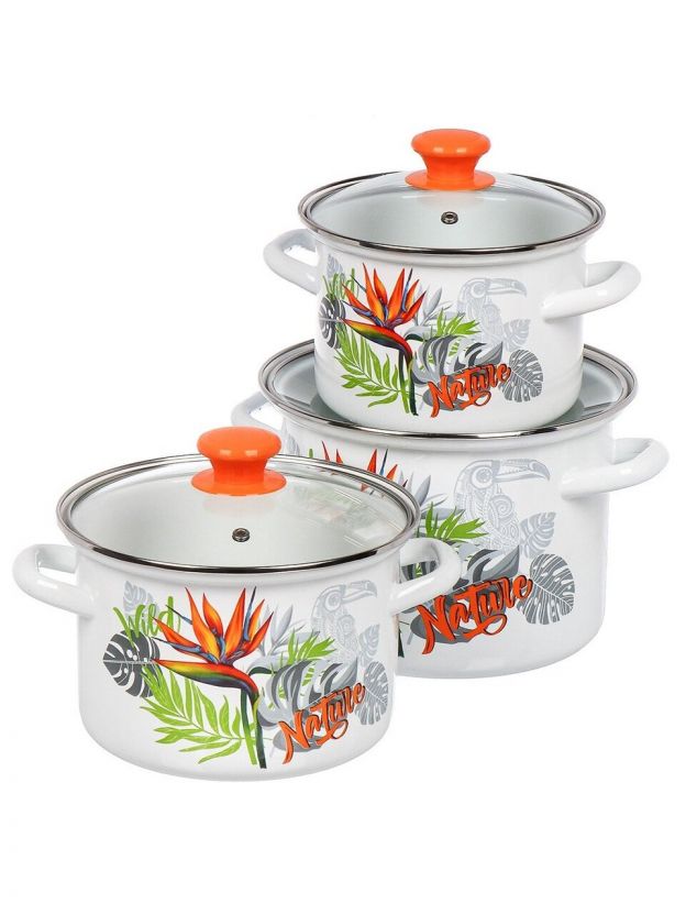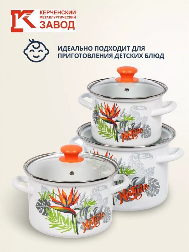 Набор посуды эмалированная сталь, 6 предметов, кастрюли 2.4,3.4,5 л, индукция, Керченский металлургический завод, Рио-5-1-Люкс, белый