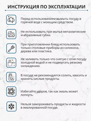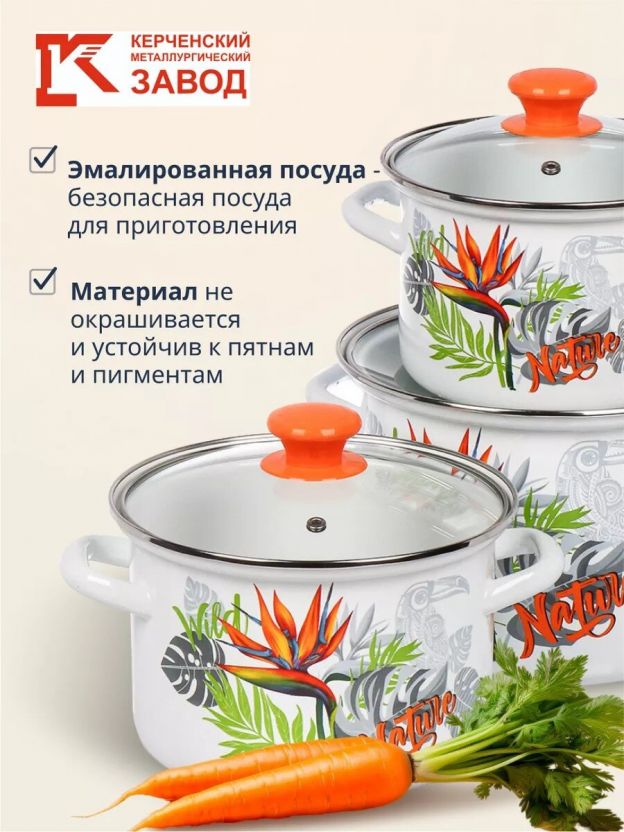 Набор эмалированных кастрюль 6 предметов (2.4, 3.4, 5 л) для индукции — универсальное решение для дома и дачи, долговечность и стиль от Керченского завода. Почему выбирают: Уникальное сочетание — эмалированная сталь и стеклянные крышки: надежность, безопасность, стильный белый дизайн Три оптимальных объема (2.4, 3.4, 5 л) — подойдут для семьи любого размера, подходят для всех типов плит, включая индукционные Практичный выбор: набор кастрюль — выгодно для дома, дачи, в подарок; универсальность использования и легкий уход Набор посуды из эмалированной стали Керченский металлургический завод Рио-5-1-Люкс — это современное решение для тех, кто ищет, какую кастрюлю выбрать для индукционной плиты или как выбрать набор кастрюль для дачи. Эмалированная сталь устойчива к коррозии, не впитывает запахи и легко очищается, а стеклянные крышки позволяют контролировать процесс приготовления без потери тепла. В отличие от обычных алюминиевых или нержавеющих аналогов, эмалированная поверхность лучше сохраняет вкус продуктов и не вступает в реакцию с пищей. Многие спрашивают: подходит ли набор для посудомоечной машины? Нет, мы рекомендуем ручную мойку для сохранения эмали. Если вы ищете, что лучше для приготовления супов, рагу или заготовок, три объема (2.4, 3.4, 5 л) обеспечивают гибкость под любые задачи: от семейного обеда до заготовок на зиму. Набор совместим с газовыми, электрическими, галогеновыми и индукционными плитами, что выгодно отличает его от большинства стандартных кастрюль. Выбирая этот набор кастрюль, вы получаете продукцию российского производства с подтвержденной долговечностью и безопасностью. Закажите сейчас — выгодная цена и быстрая доставка по России. Надежность, проверенная временем, для вашей кухни. Частые вопросы: Какой набор кастрюль выбрать для индукционной плиты? Этот набор подходит для всех типов плит, включая индукционные, благодаря специальному дну из эмалированной стали. Размеры кастрюль: 2.4, 3.4 и 5 литров. В чем выгода набора из трех кастрюль? Вы получаете универсальное решение для разных блюд — от быстрых супов до варки заготовок. Набор выгоднее по цене, чем покупка отдельных кастрюль, и идеально подходит для дома, дачи или в подарок. Можно ли мыть кастрюли в посудомоечной машине? Нет, рекомендуется ручная мойка для сохранения эмалированного покрытия и продления срока службы.