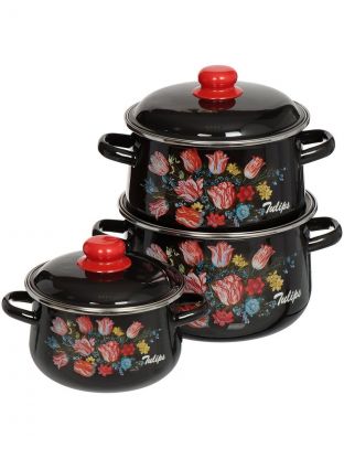 Набор посуды эмалированная сталь, 6 предметов, кастрюли 2,4,5.5 л, индукция, СтальЭмаль, Букет тюльпанов, 1с408