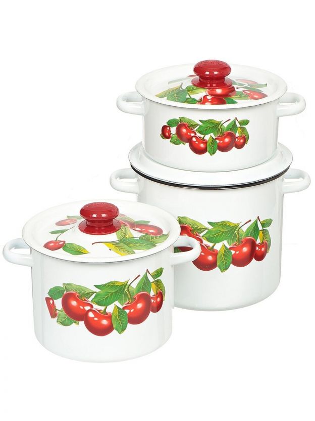 Закажите набор кастрюль «Вишневый сад 16» с быстрой доставкой. Готовьте любимые блюда без хлопот — прочная эмалированная сталь прослужит долго, а цена приятно удивит.