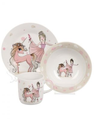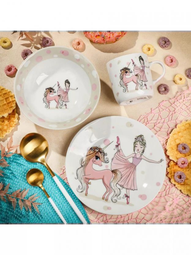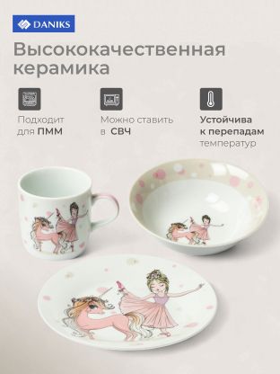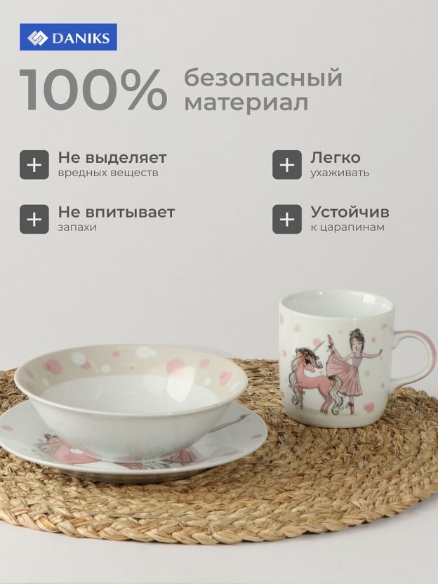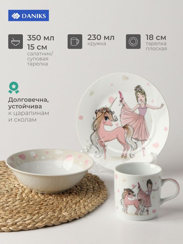 Набор посуды керамика, 3 шт, Балерина, тарелка 18 см, салатник 15 см, кружка 230 мл, Daniks, C835
