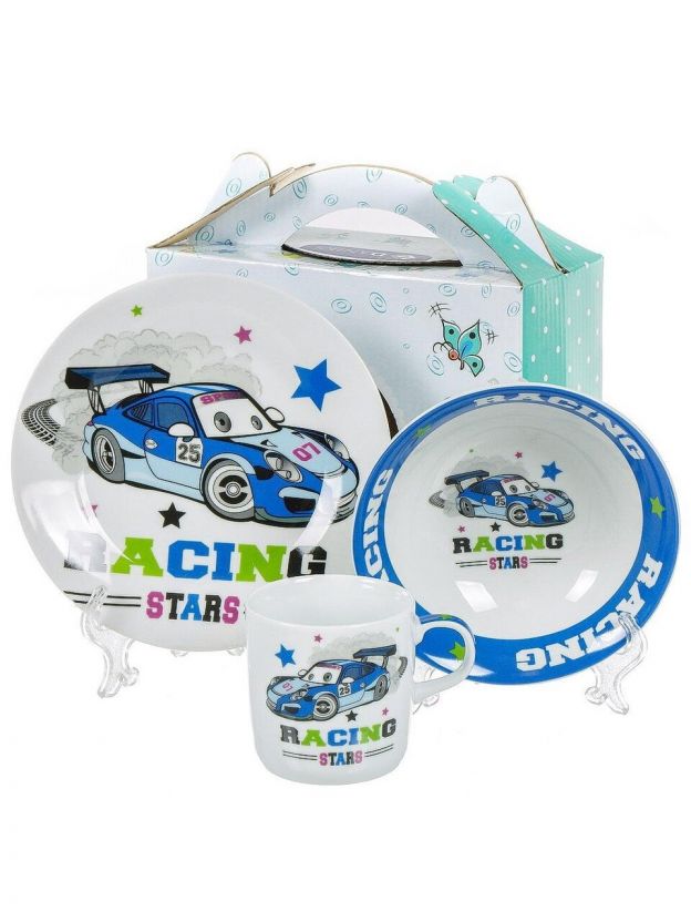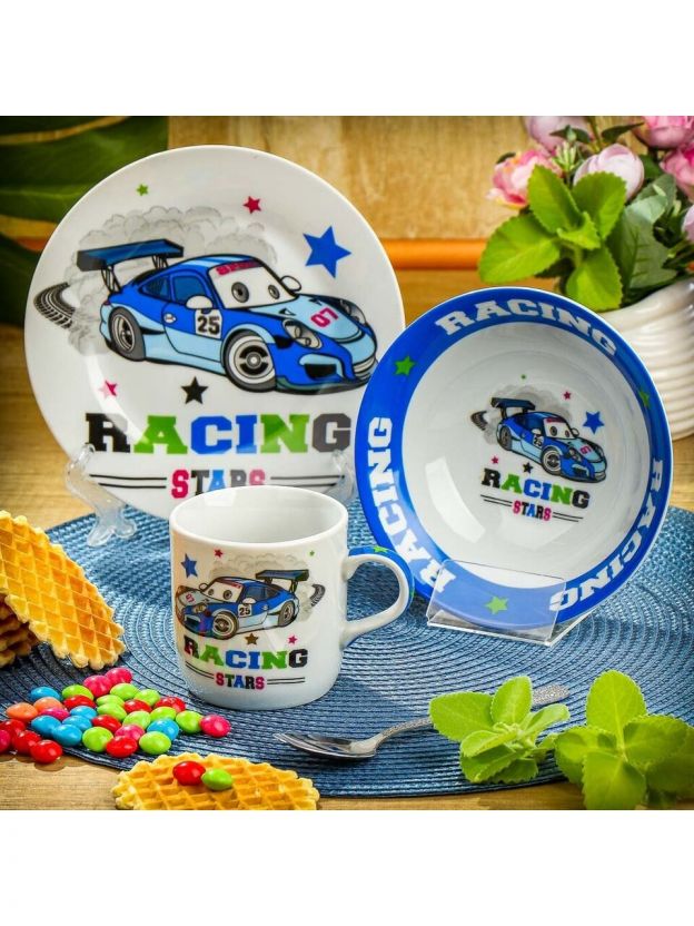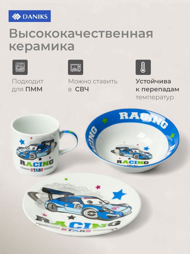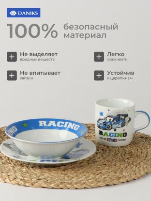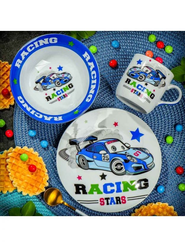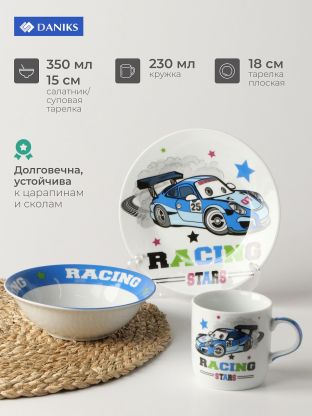 Набор посуды керамика, 3 шт, Крутой гонщик, тарелка 18см, салатник 15см/350мл, кружка 230мл, Daniks, C622