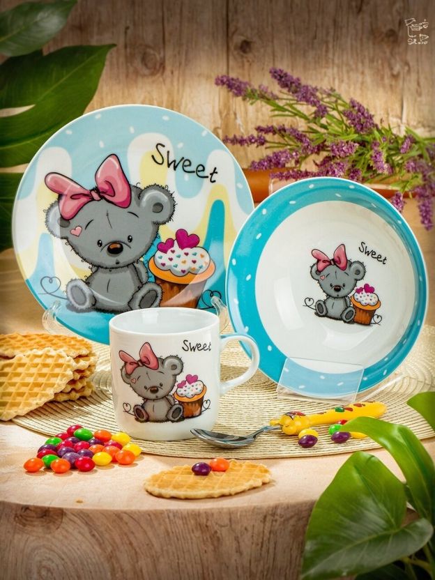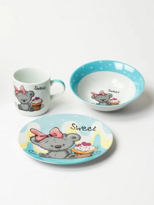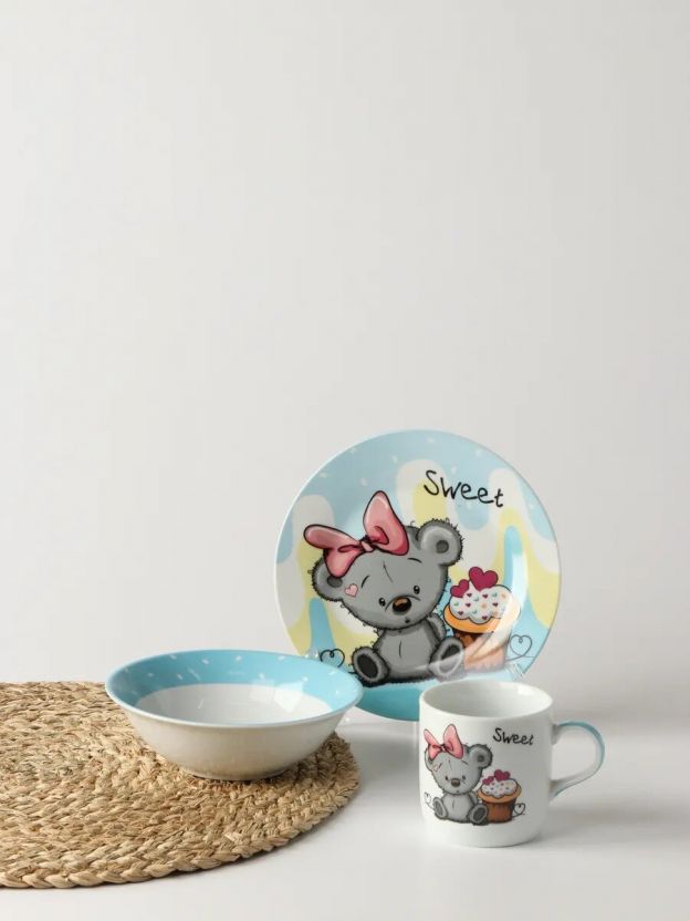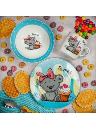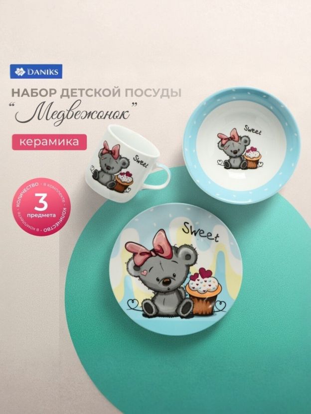 Набор посуды керамика, 3 шт, Медвежонок, тарелка 17.5см, салатник 15см/350мл, кружка 230мл, Daniks, C524
