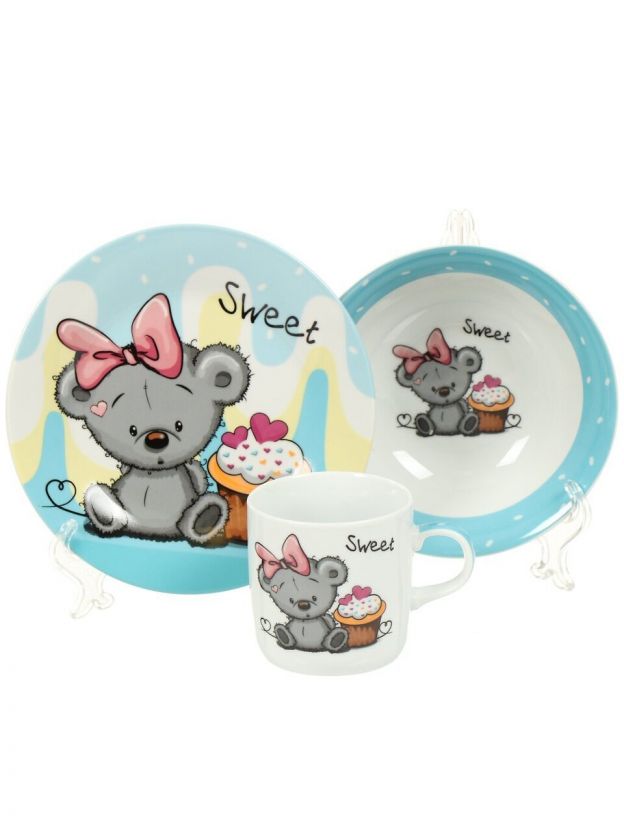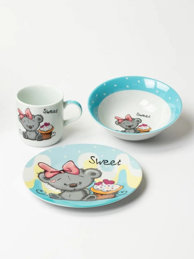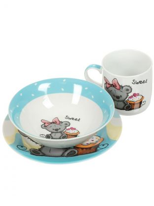 Предметы набора выполнены из высококачественной керамики и декорированы красочным рисунком. Изделия легкие и функциональные. Такой набор обязательно понравится вашему ребенку, потому что теперь у него будет своя собственная посуда с ярким и оригинальным рисунком. Набор посуды для детей включает в себя три предмета: суповую тарелку, обеденную тарелку и кружку. Набор упакован в красочную, подарочную упаковку.