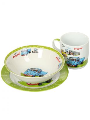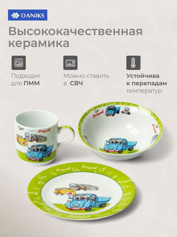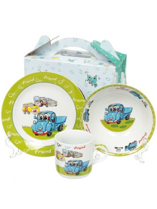 Набор посуды керамика, 3 шт, Синий грузовик, тарелка 18см, салатник 15см/350мл, кружка 230мл, Daniks, C425