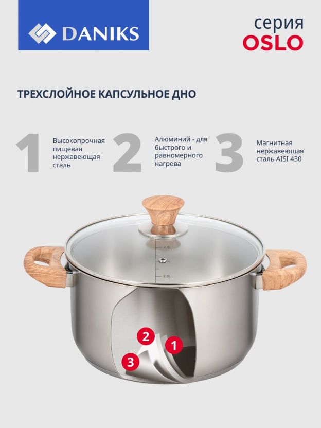 Если вы ищете, какую посуду выбрать для индукционной плиты или чем отличается посуда Daniks Осло от аналогов, обратите внимание: этот комплект совместим со всеми типами плит (газовые, электрические, стеклокерамика, индукция, галогеновые конфорки) и легко моется в посудомоечной машине. Отсутствие антипригарного покрытия гарантирует долговечность и устойчивость к царапинам, а оптимальные объёмы подходят для варки супа, каши, макарон, пельменей и приготовления на семью или компанию. В отличие от бюджетных аналогов, здесь используется более износостойкая марка стали и стеклянные крышки с паровым клапаном для сохранения полезных свойств продуктов.