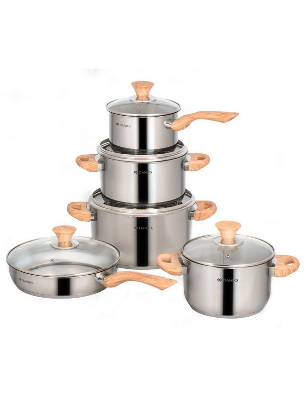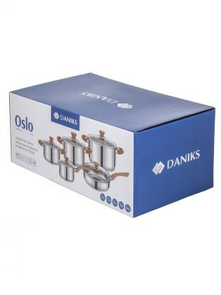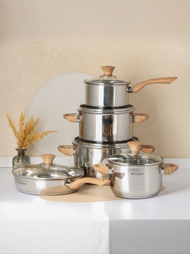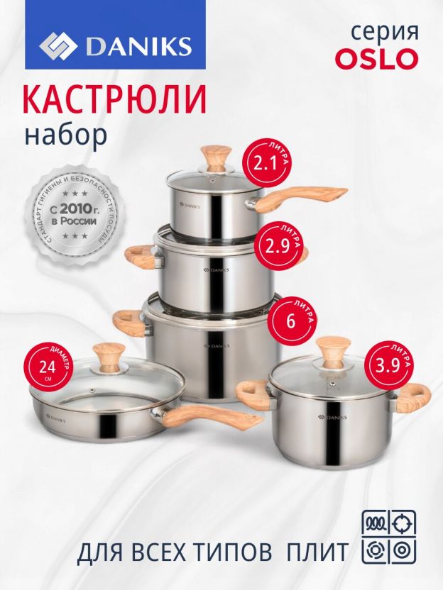 Набор посуды Daniks Осло 10 предметов: универсальное решение для кухни и дачи — оптимальные объёмы, долговечная сталь 201, подходит для всех плит, включая индукцию.