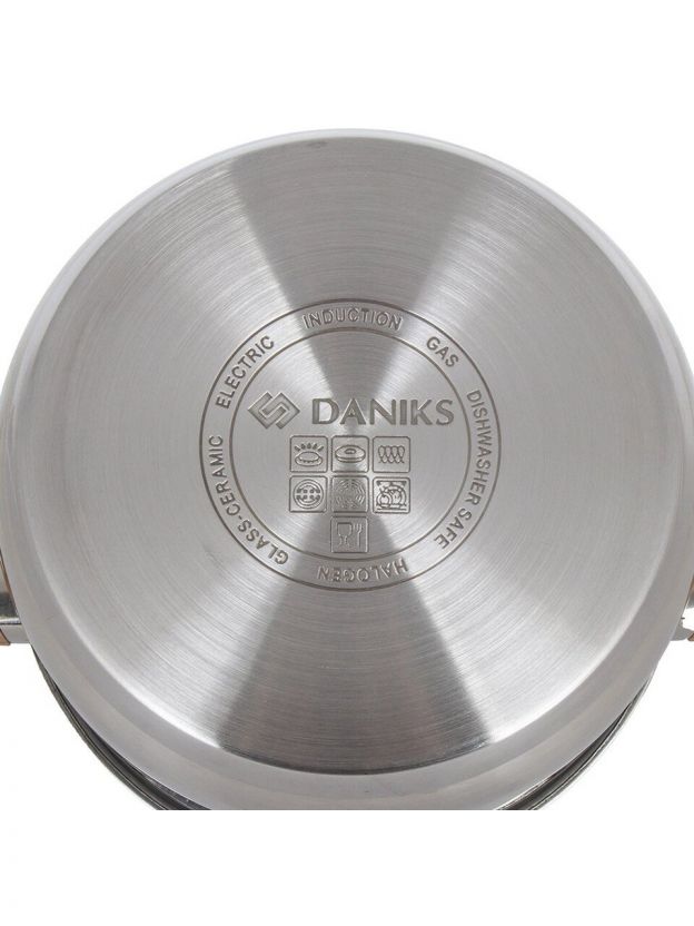 Набор посуды нержавеющая сталь, 10 предметов, кастрюли 2.9,3.9,6 л, ковш 2.1 л, сковорода 24 см, индукция, Daniks, Осло, GS-01147-10PC