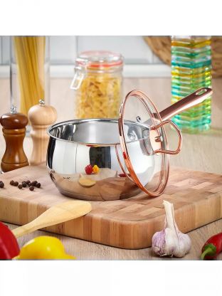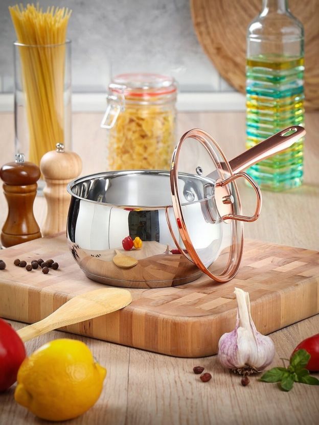 В комплекте оптимальные объёмы для готовки на разное количество людей, прочная сталь устойчива к перепадам температур, а универсальный дизайн подойдёт для любого интерьера.