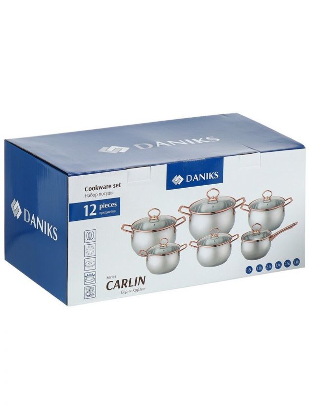 Набор посуды Daniks Карлин: 12 предметов из нержавеющей стали для всех типов плит — оптимальный выбор для дома, дачи и подарка.