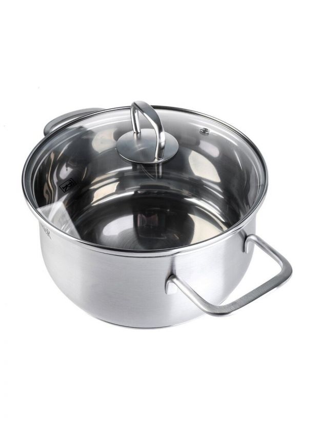 Корпус — нержавеющая сталь, крышки — прозрачное стекло, что позволяет следить за процессом приготовления без потери тепла.