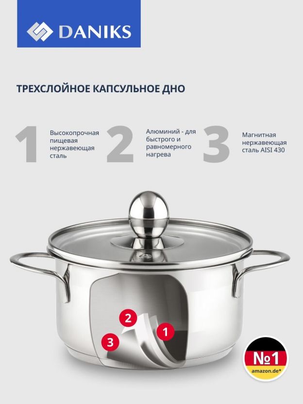 Для тех, кто ищет недорогой набор посуды для дачи или универсальный подарок, этот комплект — практичное решение. Гарантия 12 месяцев, проверенное качество Daniks, современный хромовый дизайн впишется в любую кухню.
