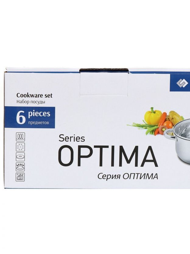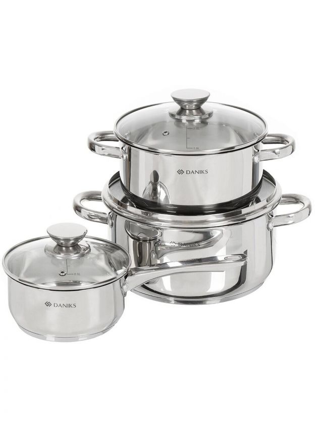 Набор посуды нержавеющая сталь, 6 предметов, кастрюли 1.5,3.1,5.4 л, индукция, Daniks, Оптима, GS-01201-6S