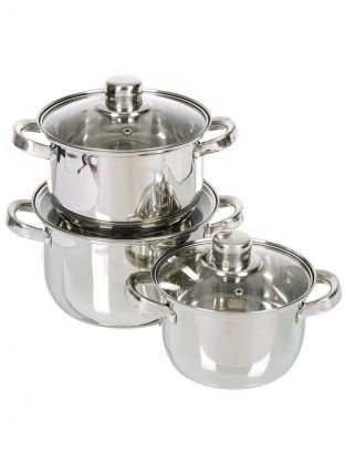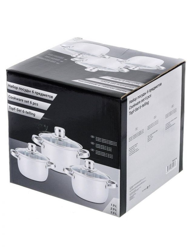 Набор посуды нержавеющая сталь, 6 предметов, кастрюли 1.9, 2.9, 3.9, DNN3, SD-A17-6