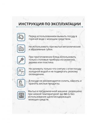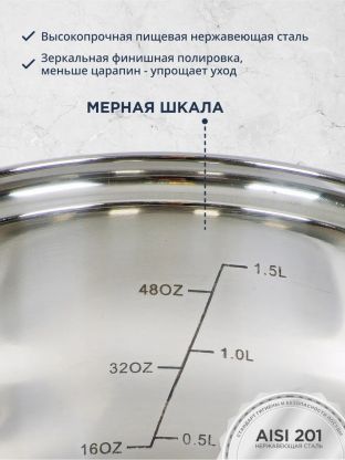 В этом наборе антипригарного покрытия нет: посуда выполнена из прочной нержавеющей стали, устойчива к механическим повреждениям и легко моется.