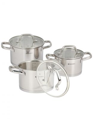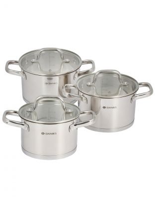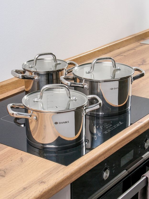 Набор посуды нержавеющая сталь, 6 предметов, кастрюли 2.1, 2.9, 3.9 л, индукция, Daniks, Рейн, GS-01229-6PC
