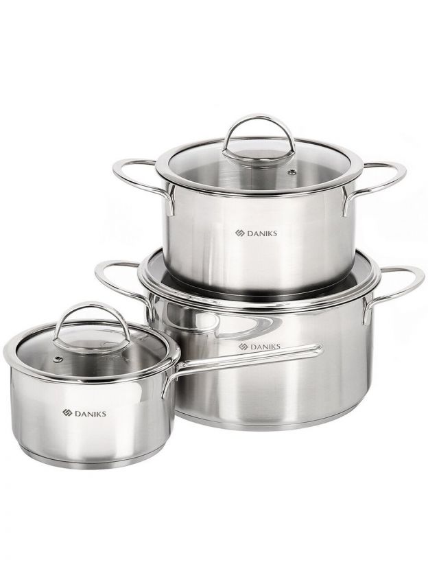 Часто спрашивают, как выбрать набор посуды для индукционной плиты или чем отличается этот комплект от других. В отличие от аналогов из алюминия, нержавеющая сталь Daniks сохраняет вкус продуктов, не деформируется при нагреве и рассчитана на долгий срок службы. Специальное дно подходит для индукционных, газовых и электрических плит — это удобно, если вы планируете использовать посуду в разных условиях. Если вы ищете, подходит ли набор для подарка, обратите внимание на стильный хромированный цвет и универсальность объёмов — такой комплект оценит любая хозяйка.