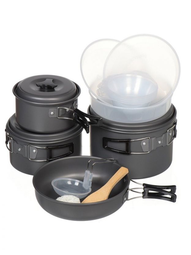 Набор алюминиевой походной посуды — отличный выбор для тех, кто обожает проводить время на свежем воздухе. Этот удобный и лёгкий комплект станет вашим верным помощником в походе, кемпинге или на пикнике. С ним вы сможете готовить разнообразные блюда на костре, начиная с завтрака из бекона и яиц и заканчивая горячими супами, пастой и рагу.