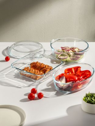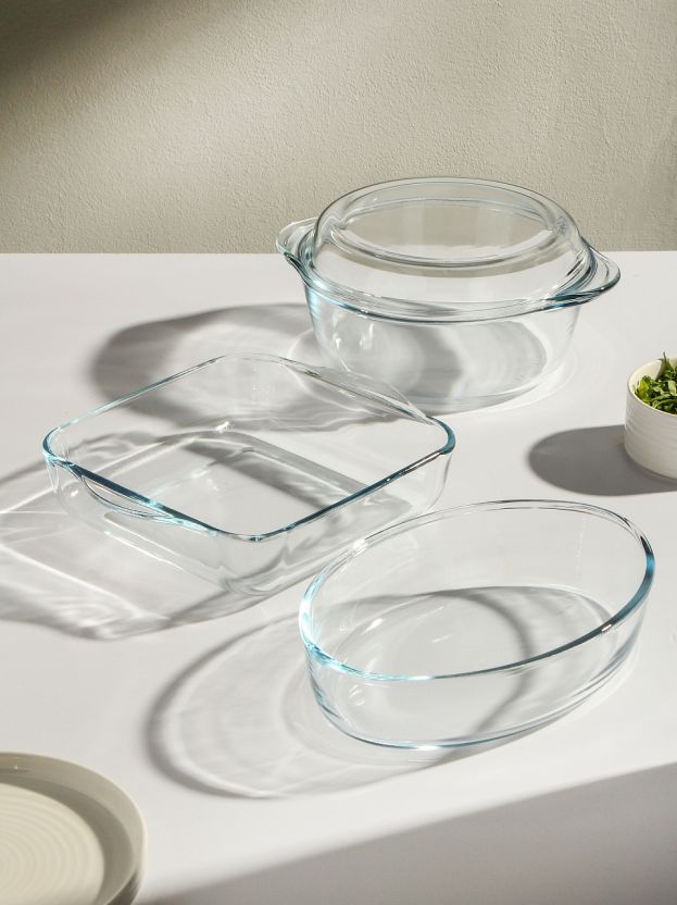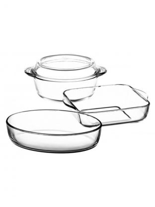 Набор посуды жаропрочной стекло, 3 шт, 21х8 см, 2, 2, 1.5 л, овальный, с крышкой, кастрюля, 2 формы для выпечки, Borcam, 159071