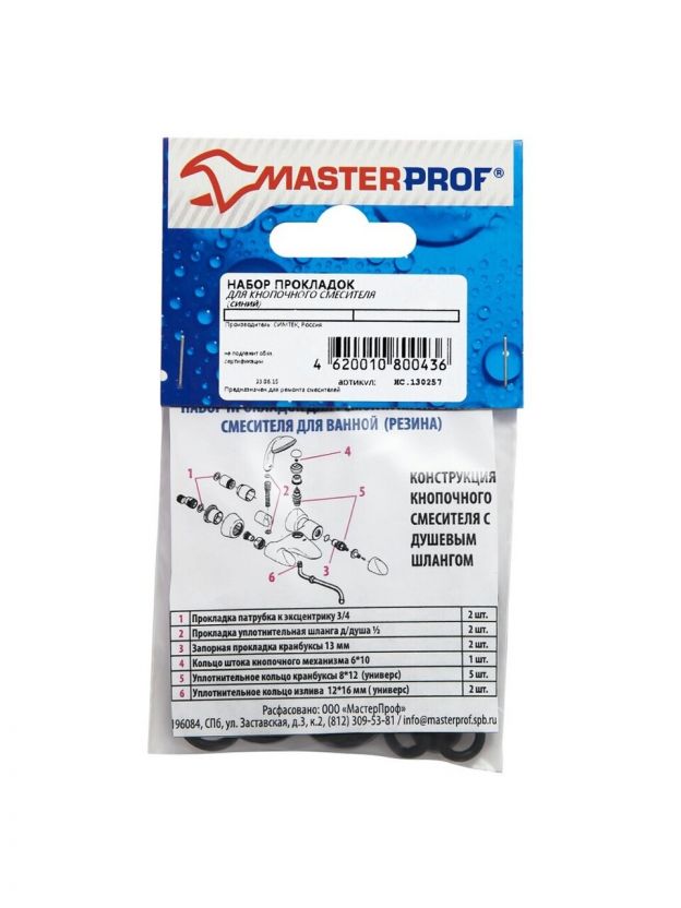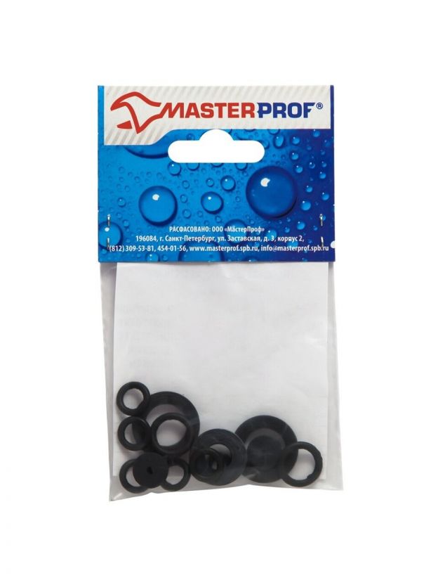Набор прокладок сантехнических для кнопочного смесителя, 14 шт, резина, MasterProf, индивидуальная упаковка, ИС.130257
