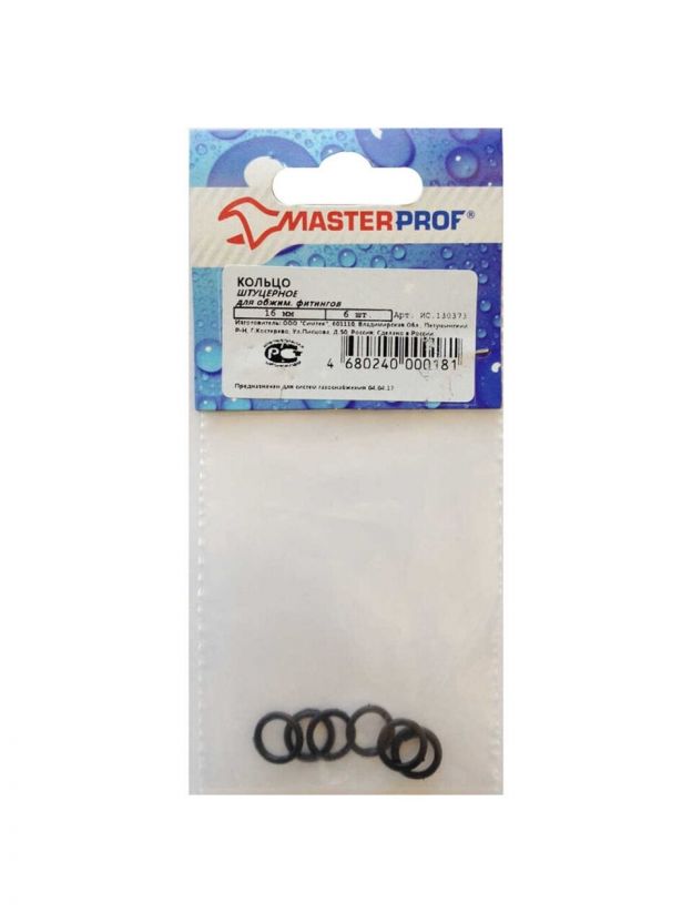 Набор прокладок сантехнических для металлопластиковых фитингов, 6 шт, диаметр 16 мм, EPDM, MasterProf, индивидуальная упаковка, ИС.130373