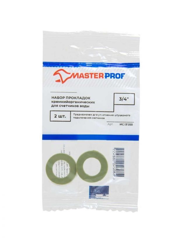 Набор прокладок сантехнических для счетчика, 2 шт, 3/4", силикон, прозрачные, MasterProf, ИС.131355