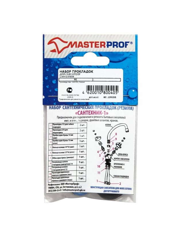 Набор прокладок сантехнических для смесителя, резина, MasterProf, Сантехник №1, индивидуальная упаковка, ИС.130255