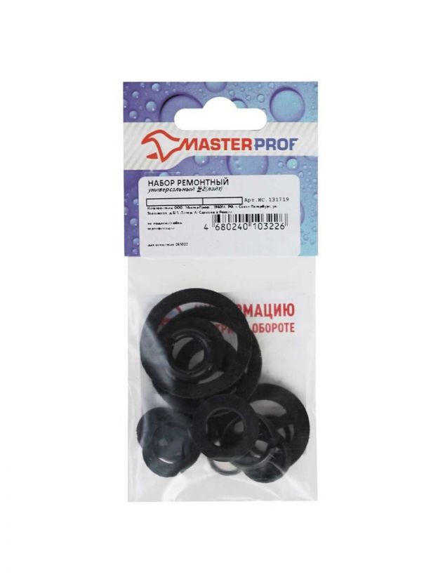 Набор прокладок для смесителя MasterProf универсальный №2 ИС.131719 содержит в себе оптимальный состав комплектующих, которые применяются при ремонте самых распространенных видов протечек.