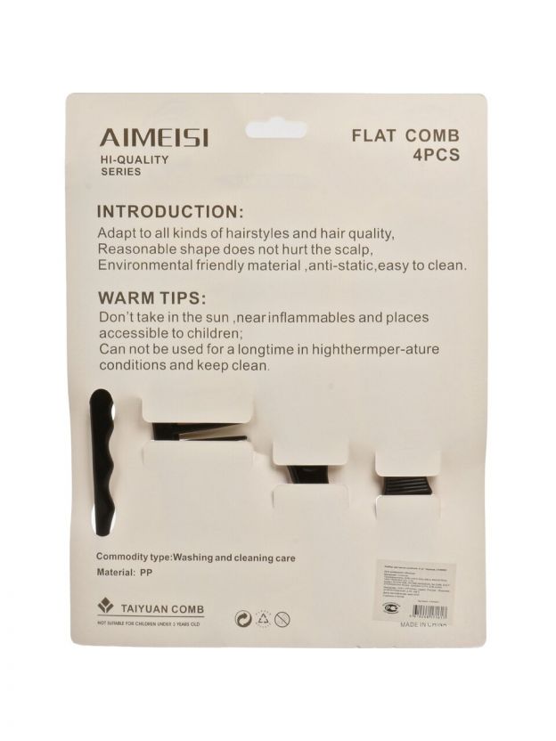 В комплекте 4 расчески-гребня черного цвета. Размеры оптимальны для домашнего и дорожного использования — легко помещаются в сумку или косметичку.