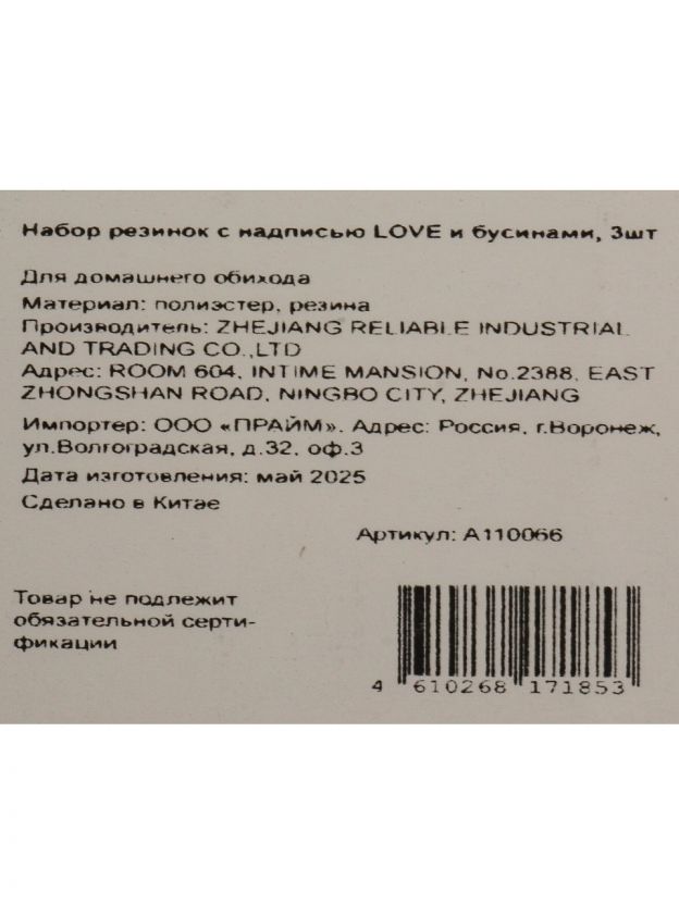 Набор резинок 3 шт, полиэстер, резина, в ассортименте, с надписью Love и бусинами, A110066