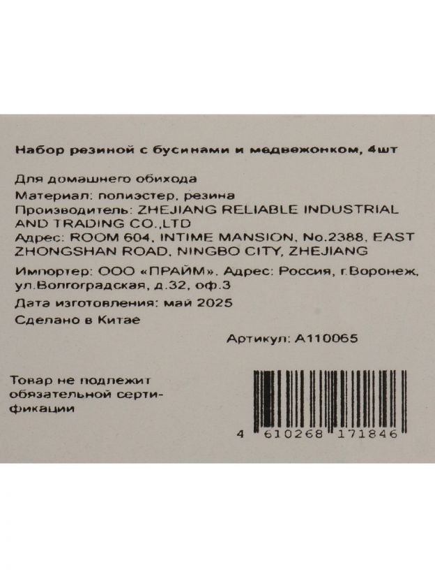 Набор резинок с бусинами и медвежонком (артикул A110065) — это функциональный аксессуар для волос, который сочетает привлекательный внешний вид и долговечность. Благодаря сочетанию полиэстера и резины, резинки не тянут и не ломают волосы, легко надеваются и снимаются. Если вы ищете, какие резинки выбрать для ребёнка, чтобы они не портили причёску и были безопасны для ежедневного использования, этот набор — оптимальное решение.