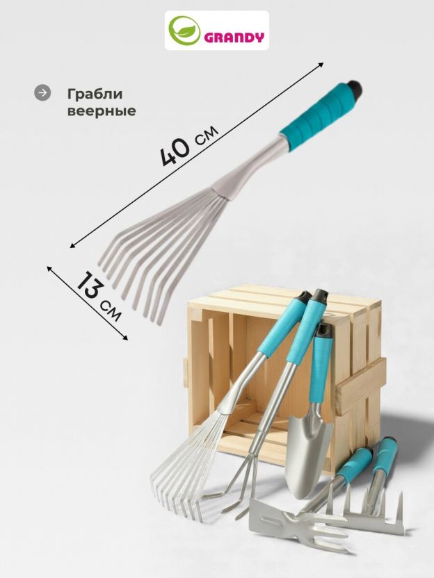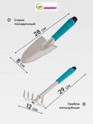 - Грабли пятизубые - 1 шт, длина 29 см, ширина рабочей части 12 см.