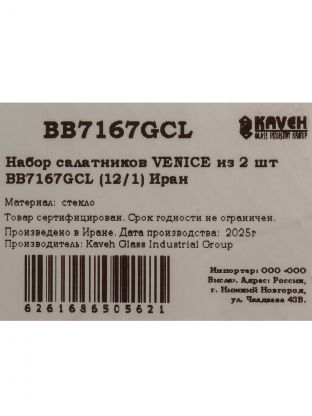 Набор салатников из стекла Venice Kaveh — 2 стильные миски для сервировки и хранения, подходят для дома, дачи и подарка. Прочное стекло, современный дизайн.
