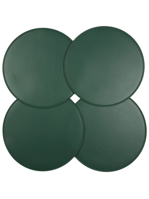 Каждая салфетка имеет диаметр 38 см, форма — круглая. В наборе 4 штуки, цвет — зелёный.