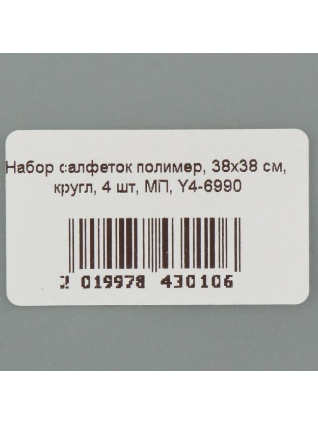 Набор салфеток полимер, 38х38 см, круглый, 4 шт, МП, Y4-6990