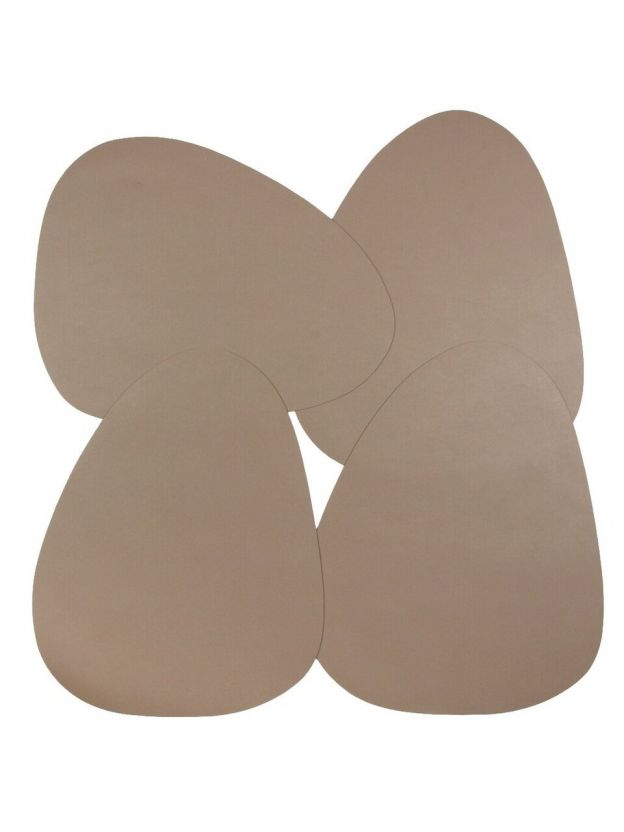 В комплекте 4 круглых салфетки коричневого цвета, материал — износостойкий полимер.