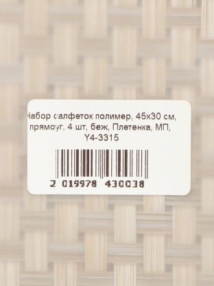 В комплекте 4 прямоугольные салфетки размером 45х30 см каждая, цвет — бежевый, дизайн — «Плетенка».