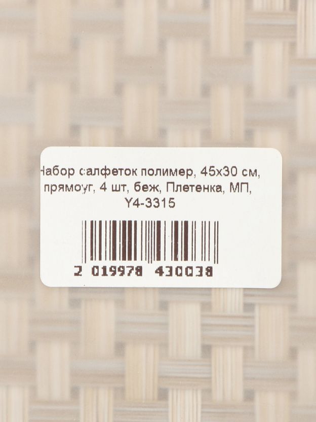Набор салфеток полимер, 45х30 см, прямоугольный, 4 шт, МП, бежевый, Плетенка, Y4-3315
