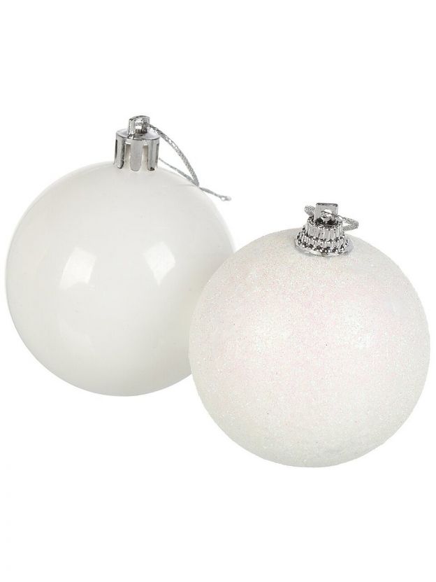 Набор белых шаров 24 шт Y4-8456: небьющиеся, универсальные, в стильной коробке — оформите интерьер и елку без хлопот и лишних затрат.