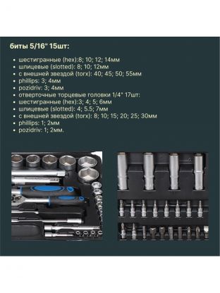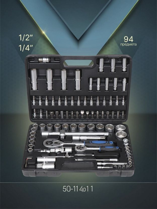 Набор слесарных инструментов Рокот, 736-120, 1/2", 1/4", сталь, кейс, 94 предмета