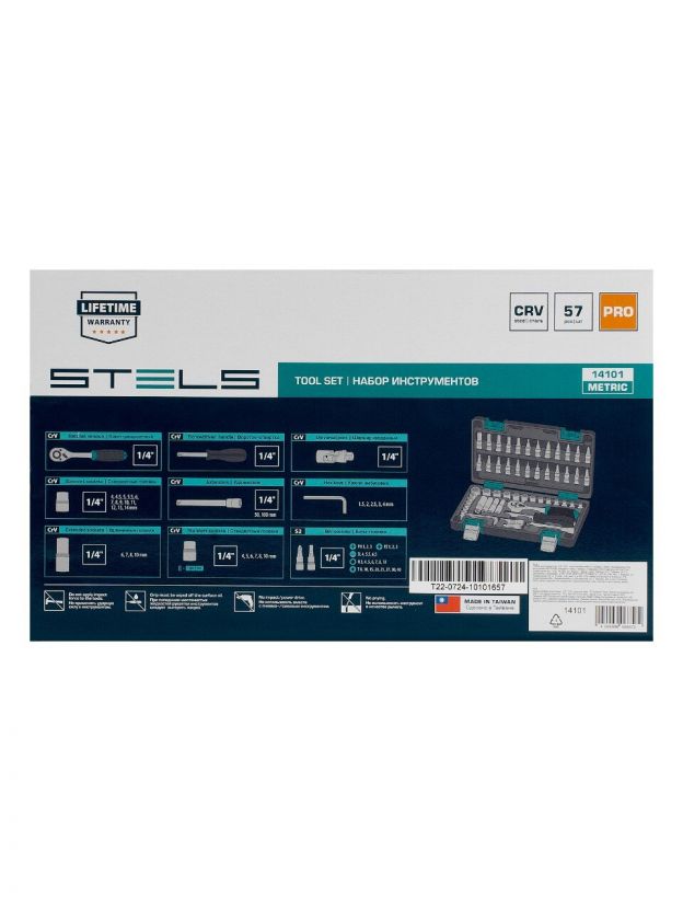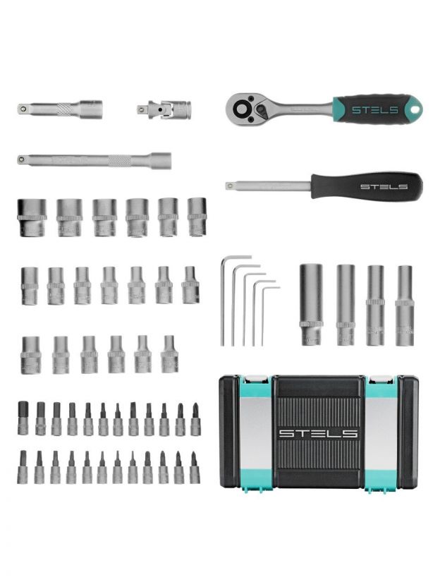 Наборы инструментов торговой марки STELS разработаны специально для автолюбителей и центров технического обслуживания. Каждый этап производства контролируется в соответствии с международными стандартами. Головки и комбинированные ключи изготовлены из хромованадиевой стали, придающей инструменту исключительную твердость в сочетании с легкостью. Биты, биты-вставки и отвёртки производятся из стали S2, улучшающей свойства инструмента. Все наборы упакованы в кейс, изготовленный из жесткого противоударного пластика, с металлическими застёжками. Наборы инструмента STELS пригодятся вам не только в автомобиле. С их помощью можно проводить бытовой ремонт дома и на даче, ремонт бытовых конструкций и садовой техники.