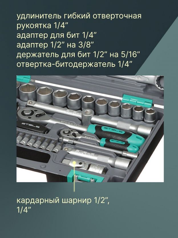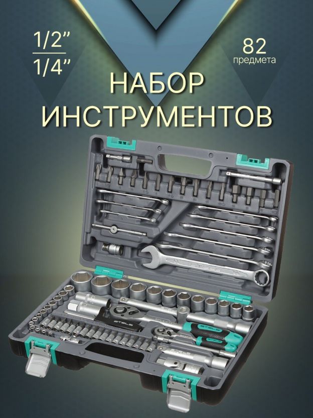 Набор слесарных инструментов Stels, 14105, 1/2", 1/4", сталь, кейс, 82 предмета