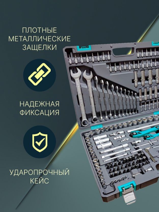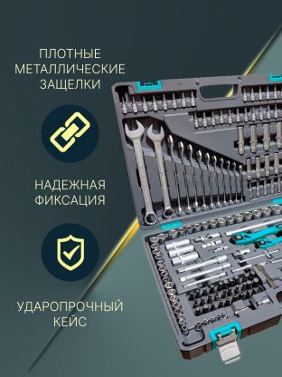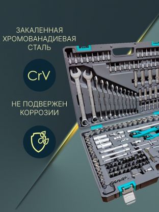Для удобства хранения и транспортировки обширного набора инструмента Stels 14115 в комплекте предусмотрен пластиковый кейс с ручкой. Материалом для изготовления металлических деталей оснастки и инструмента послужила долговечная хромованадиевая сталь. Изделия набора вы сможете применить при ремонте и обслуживании транспорта, садовой и огородной техники, бытовых приборов, механизированного инструмента.