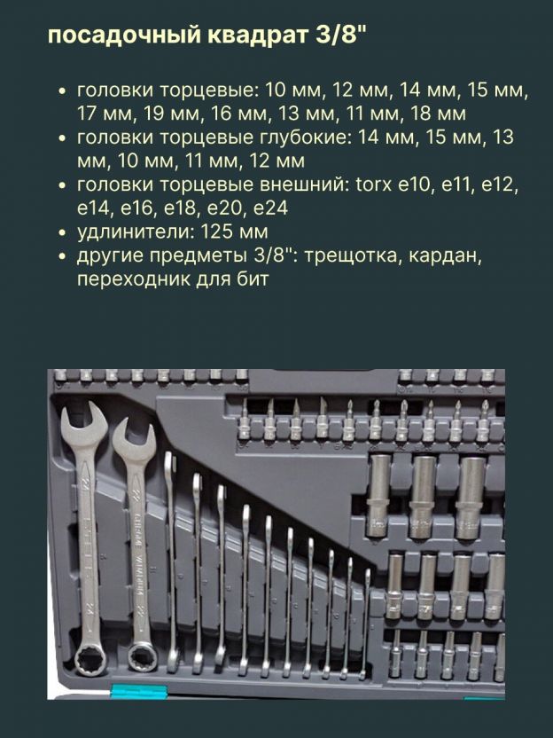 • Другие предметы 3/8": трещотка, кардан, переходник для бит