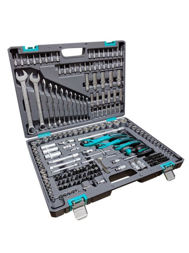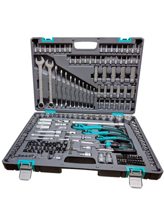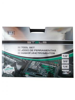 Набор инструментов Stels 14115 состоит из 216 предметов и предлагает вам широкий спектр ручных инструментов и рабочих принадлежностей для проведения монтажно-слесарных, строительных, ремонтных операций. В комплекте представлены биты и торцевые головки с приводами 1/4", 3/8" и 1/2", а также средства для их эффективного использования - трещотки, отвертки со сменными насадками, удлинители и переходники, шарниры, карданы и т.д. Кроме того, набор содержит комбинированные гаечные ключи и ключи-шестигранники.