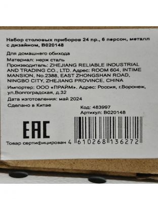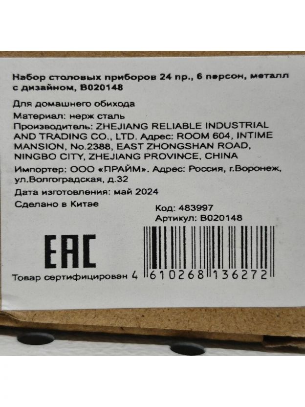 Набор столовых приборов металл, 24 предмета, столовый, B020148, с дизайном