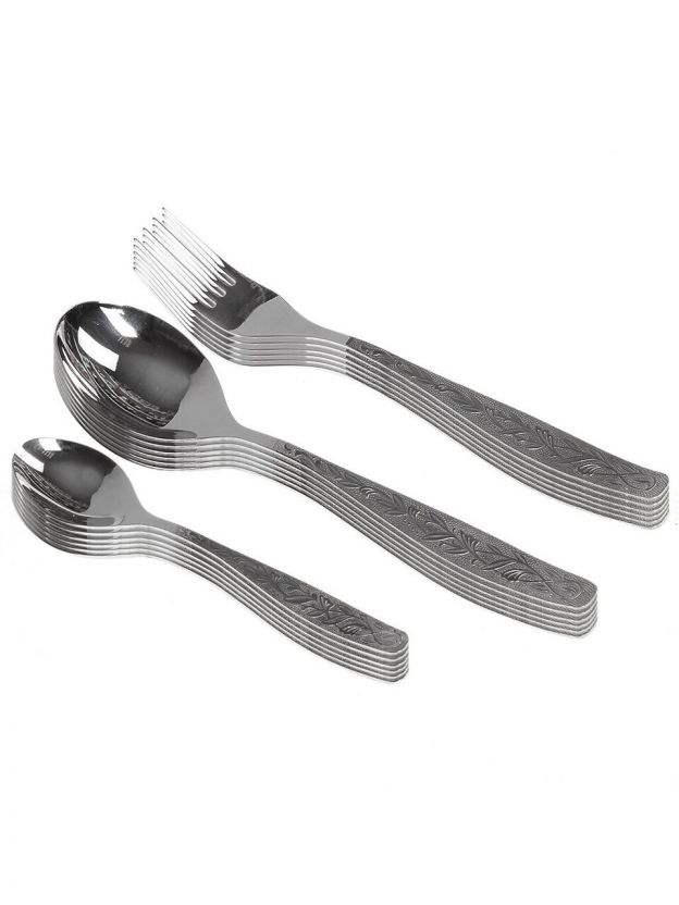 Набор столовых приборов Добросталь/Нытва Уралочка М13 (18 предметов, серебристый) — для стильной сервировки стола на 6 персон: долговечная нержавеющая сталь, художественная роспись, оптимально для дома или подарка.