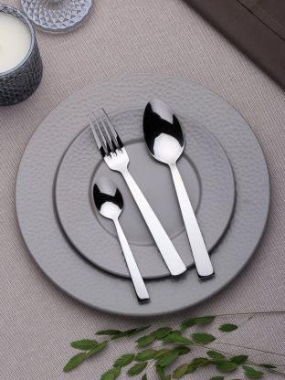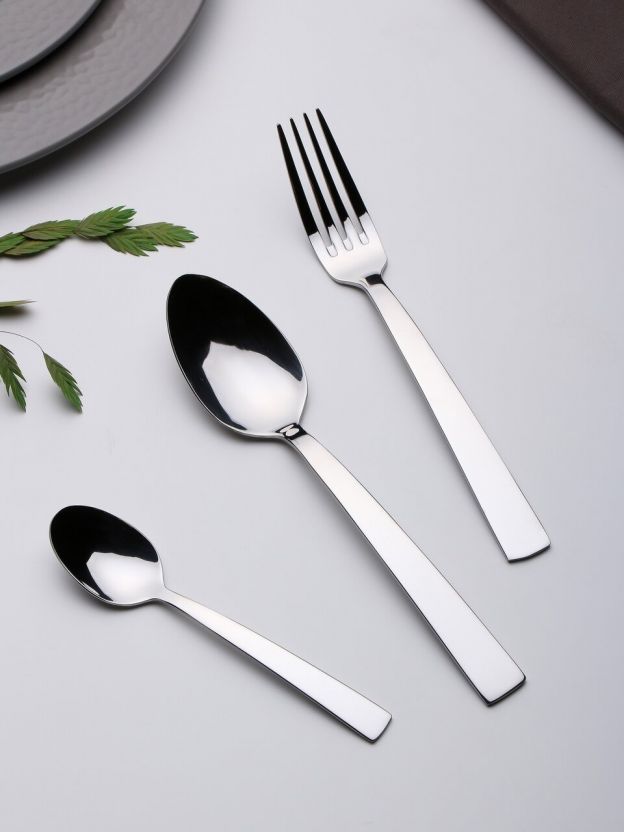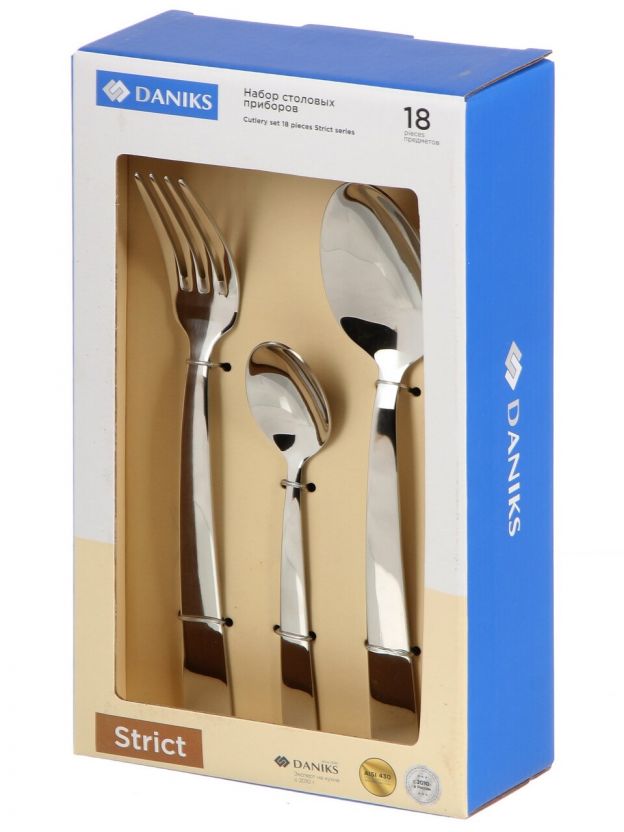 В наборе Daniks Strict 18 предметов из цельной нержавеющей стали: по 6 ложек, вилок и ножей — материал не ржавеет, не впитывает запахи и рассчитан на долгий срок службы.